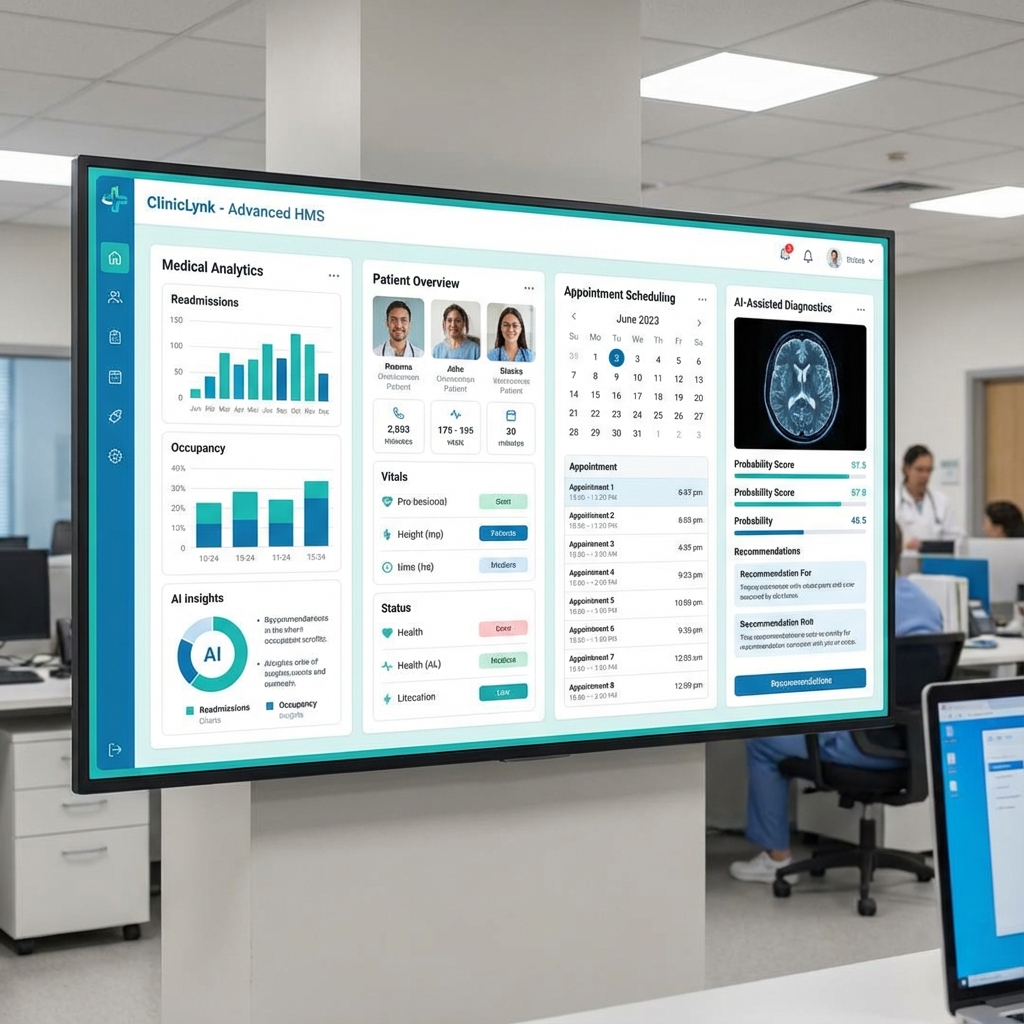 ClinicLynk is a full-scale AI-enabled Hospital Management System (HMS) built to manage hospitals, clinics, diagnostic centres, and nursing homes from one unified platform. It utilizes artificial intelligence to assist doctors and staff with operations, patient care, and decision support.